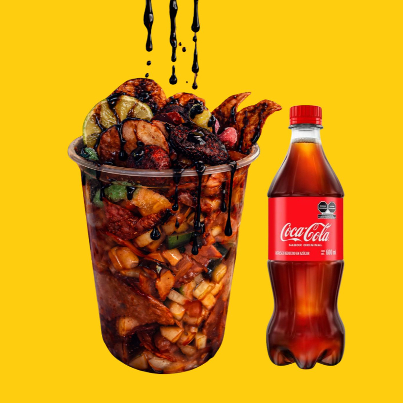 Coca Cola 600 ml*1 + Litro de Papas con Sabor Salsas Negras*1