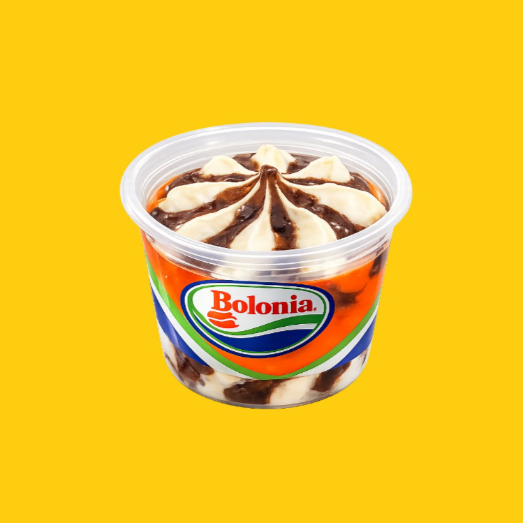 Nieve Bolonia Vainilla con Jarabe de Chocolate