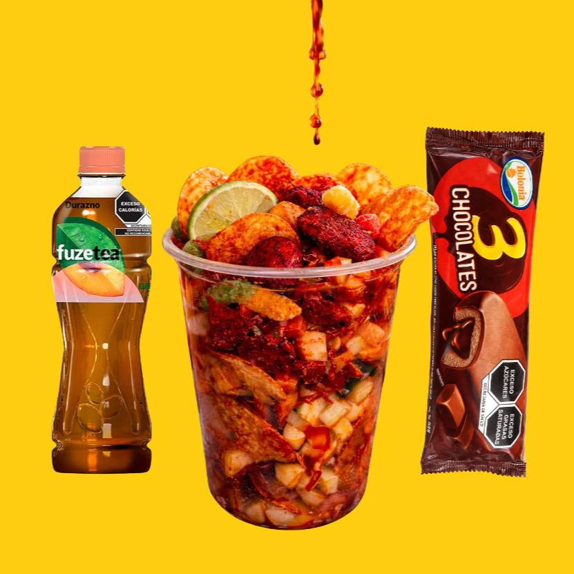 Nuestro mix de Cheetos Flaming Hot es una bomba de sabor desde el primer bocado, bañados con tus salsas favoritas y mezclados con toppings bien chidos para hacer el equilibrio perfectos entre ácido, dulce y picosito.