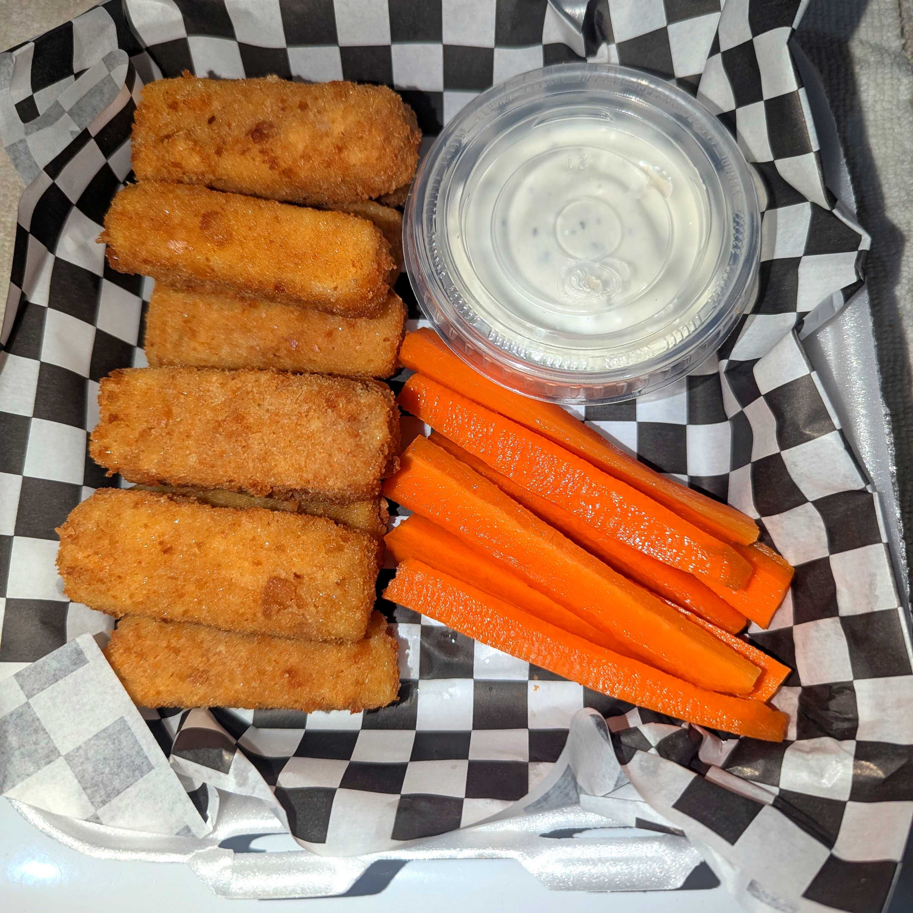 10 pzas de dedos dé queso con zanahoria y aderezo ranch