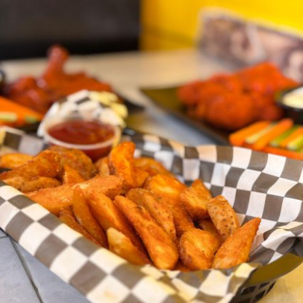 Cama de 250gr de papas francesa, y 200gr de boneless bañados con la salsa de tu preferencia.