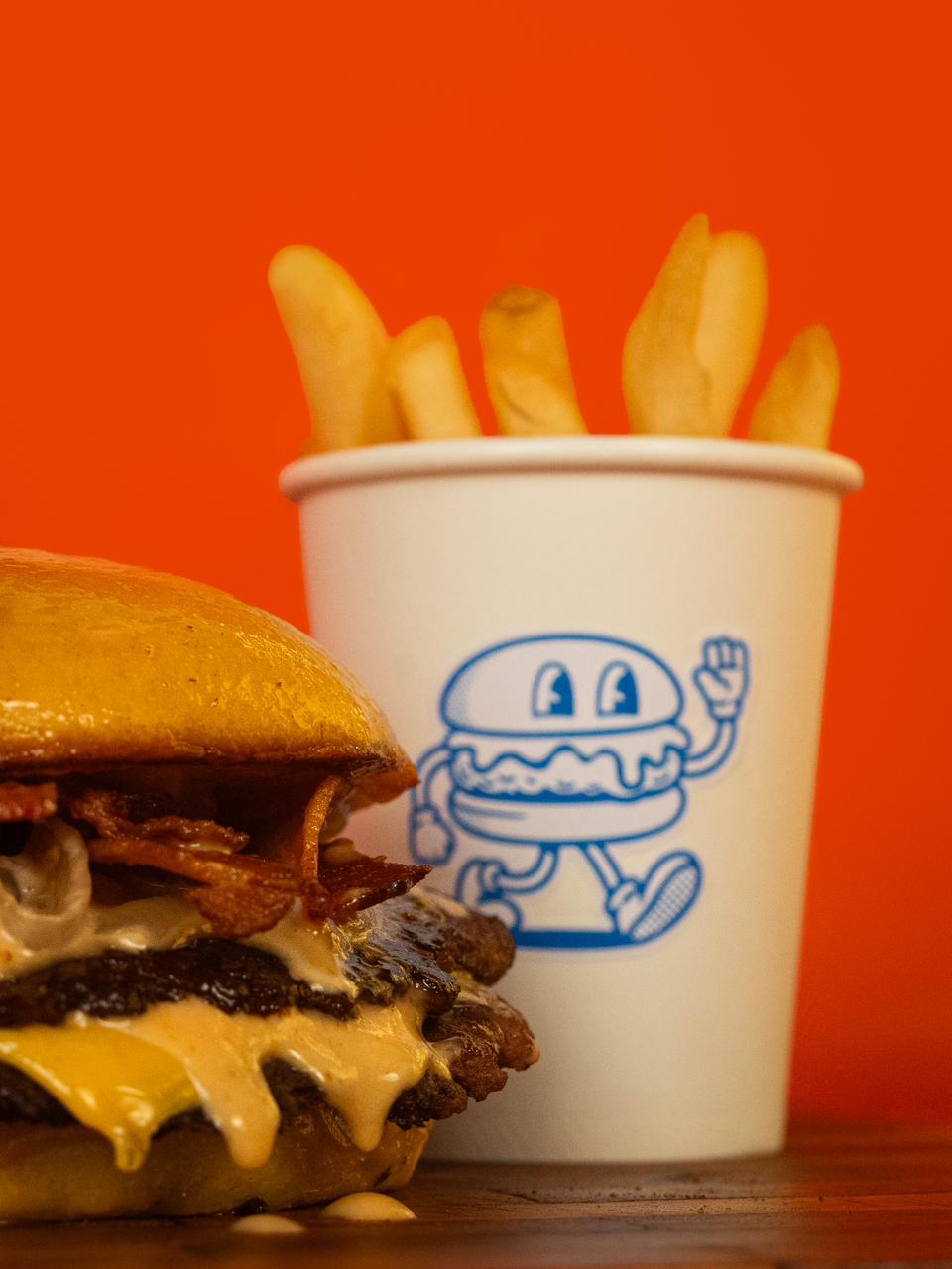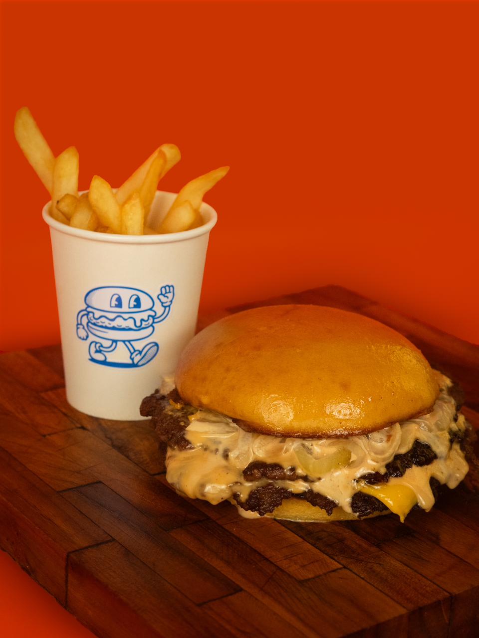 Hamburguesa con doble carne 100% picaña, con pan brioche, aderezo de la casa y cebolla caramelizada.