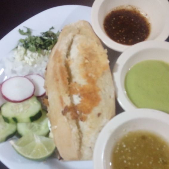 BOLILLO GRANDE, CARNE A SU ELECCION, CREMA, LECHUGA, CEBOLLA Y JITOMATE