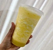 Jugo de naranja más manzana verde, apio, piña, nopal, espinaca y pepino, (puede incluir avena o chía).