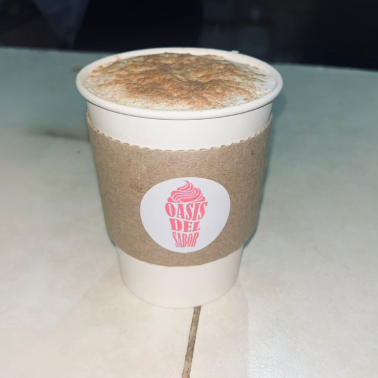 Intenso sabor a rompope (con alcohol), elaborado a base de leche, café, endulzante más un toque de vainilla y hielo.