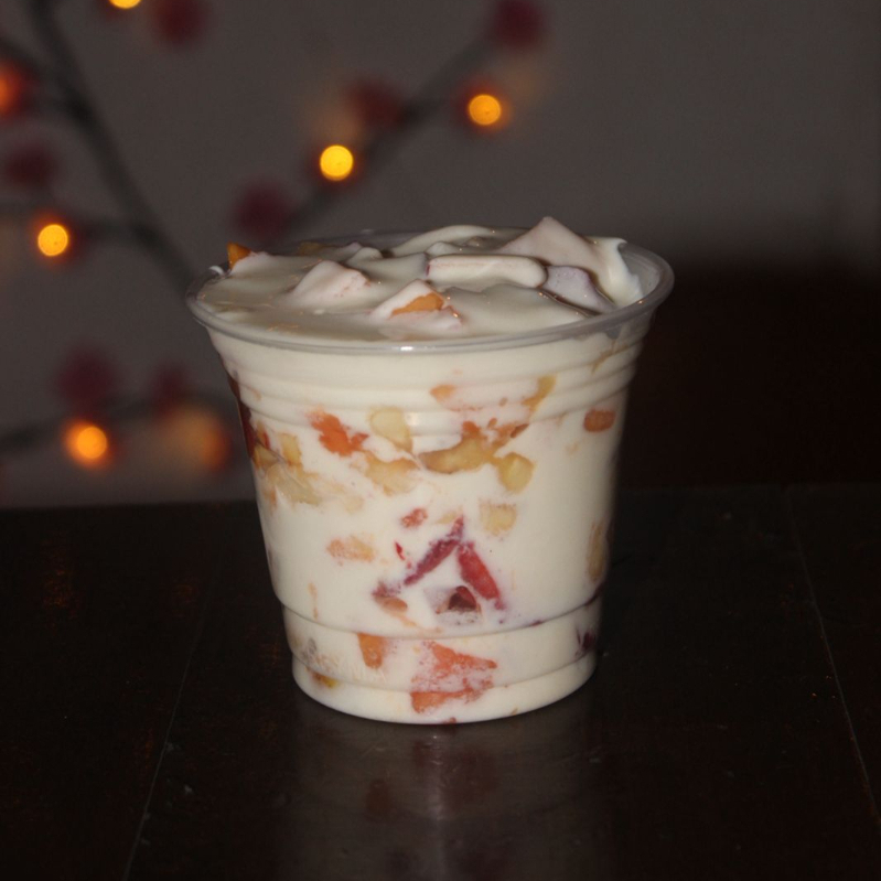 Vaso de 10oz con fruta de tu elección picada combinada en una cremosa mezcla a base de yoghurt natural y endulzantes.