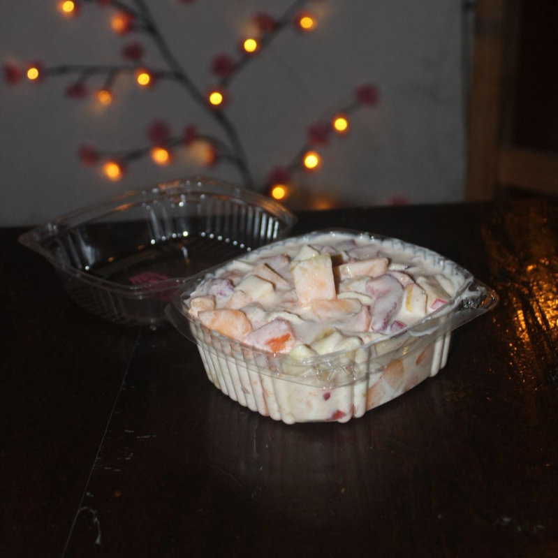 Fruta de tu elección picada combinada en una cremosa mezcla a base de yoghurt natural y endulzantes.