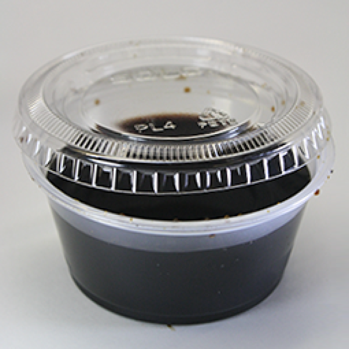 PECHUGA DE POLLO EMPANIZADO ACOMPAÑADO DE ADEREZO RANCH Y DE CORADO CON AJONJOLI Y CEBOLLIN.