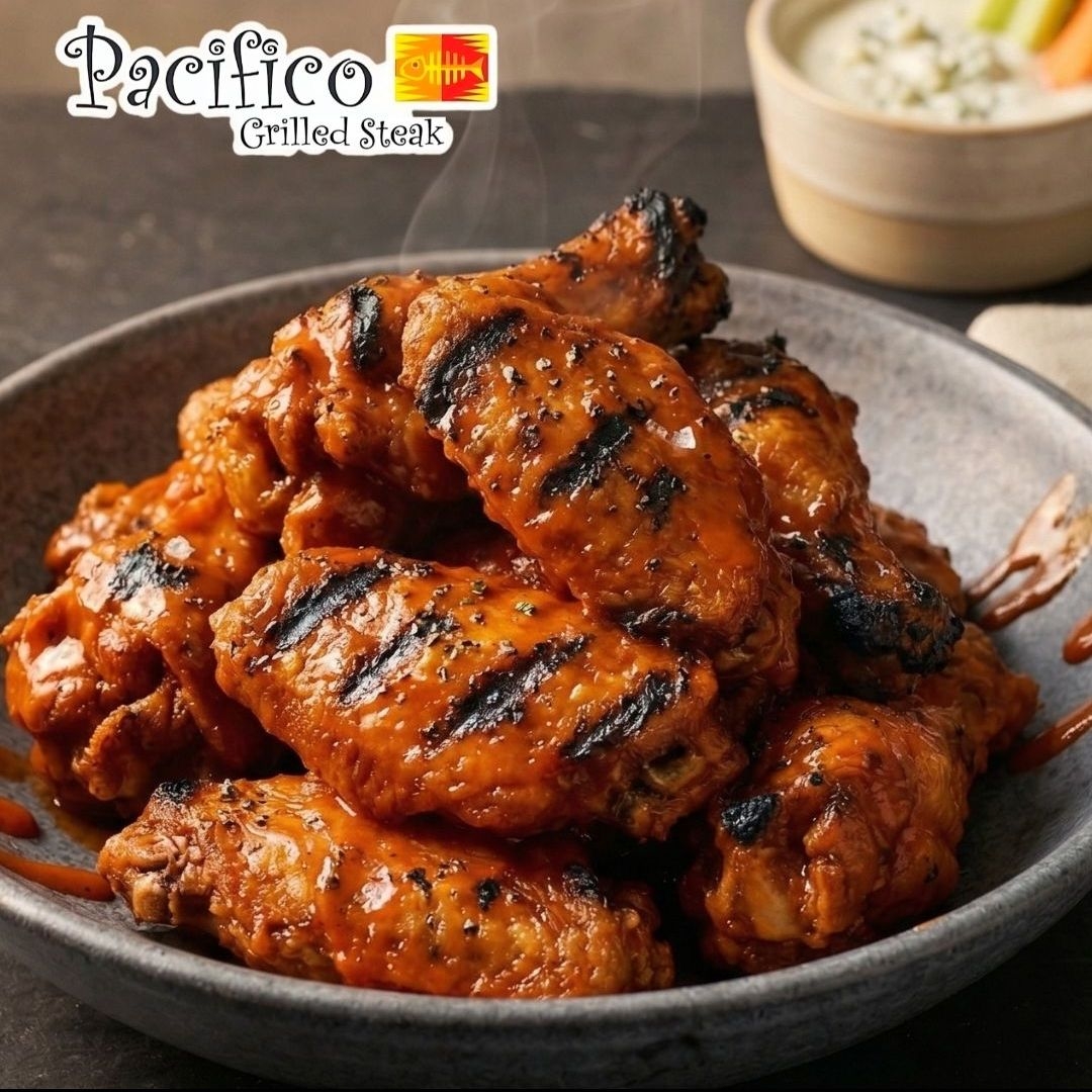 1 kg de alitas adobadas, incluye aderezo ranch.