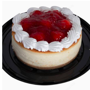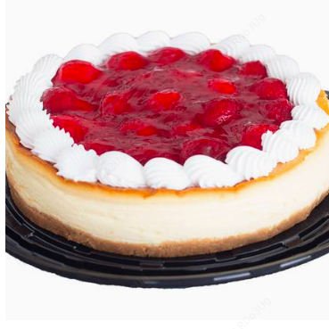 Pastel de queso tradicional tipo New York decorado con fresas y crema batida.