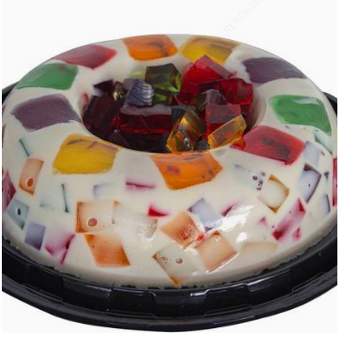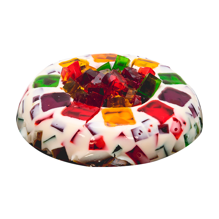 Gelatina de leche con mosaicos de gelatinas de sabores.