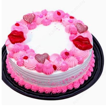 Pan de vainilla bañado en tres leches relleno de crema de fresa con una capa en el centro de cheesecake, decorado con crema batida, hojaldre molido y frutas.