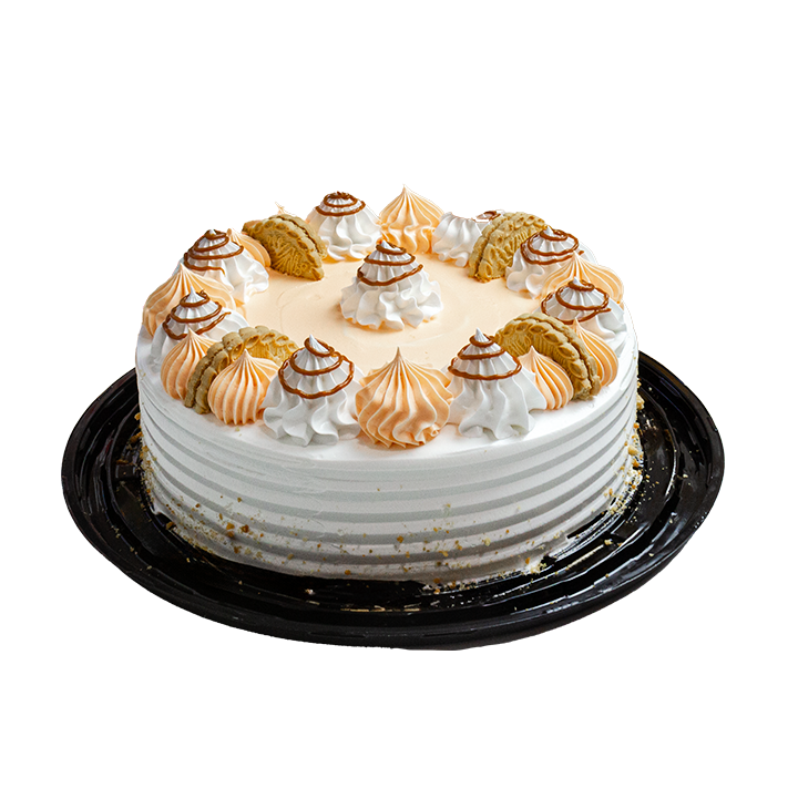 Pan de vainilla bañado en tres leches relleno de crema y dulce de leche.