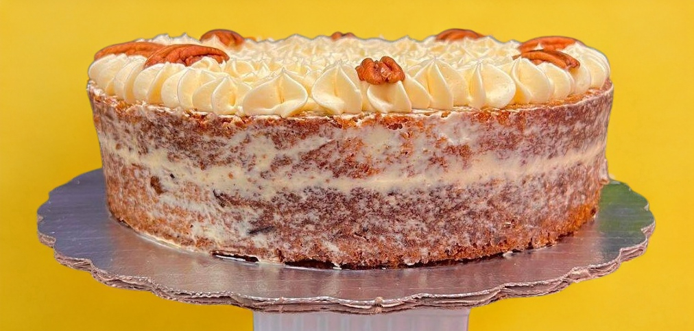 Delicioso Bizcocho suave esponjoso con nueces, piña, zanahoria, y un ligero sabor a canela. 16/20 personas aprox