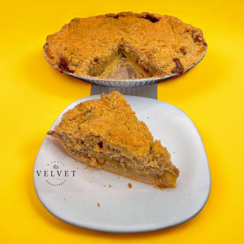 Hecho con nuestra base all butter, un delicioso relleno de manzanas verdes naturales y un jarabe de manzana 100% casero. 16 personas aprox