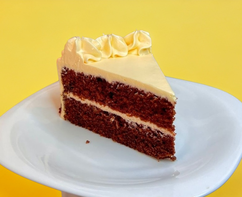 Hecho con la receta tradicional Estadounidense, delicioso pan esponjoso aterciopelado con un ligero sabor a chocolate y un betún cremoso de queso crema