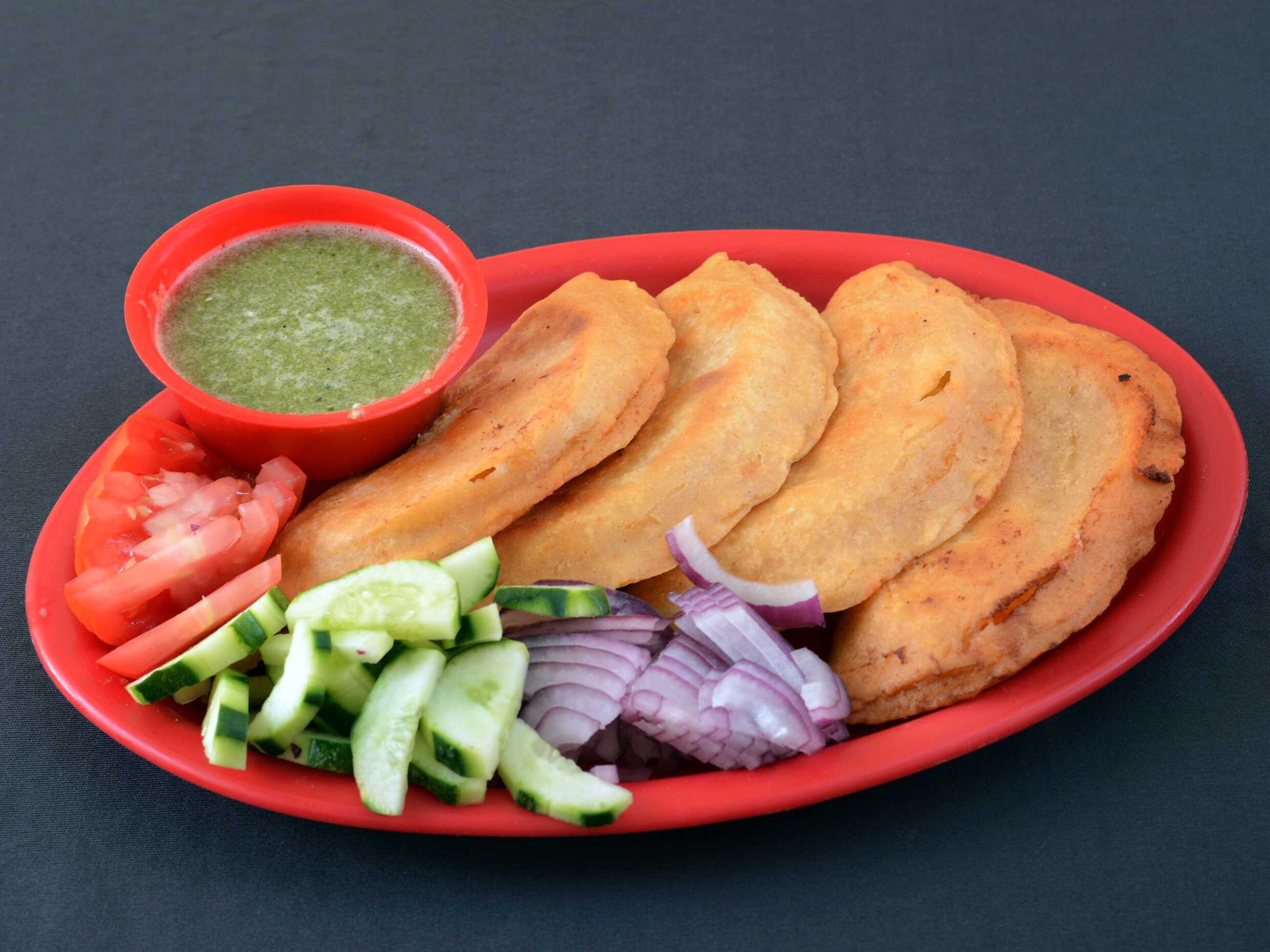 4 empanadas pepino media luna cebolla salsa de agua chile para una persona