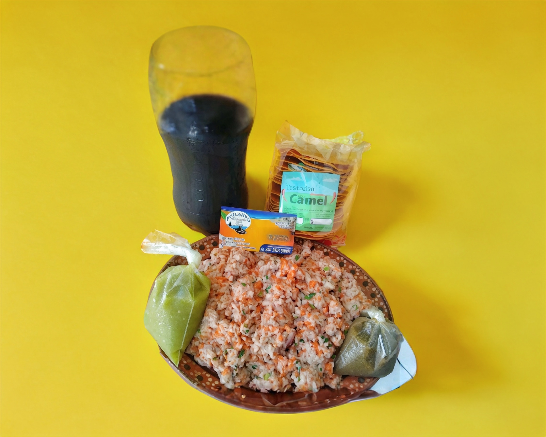 1/2kg de ceviche tradicional con verdura picada, refresco d 600ml. Totopos y su salsa en agua Chile