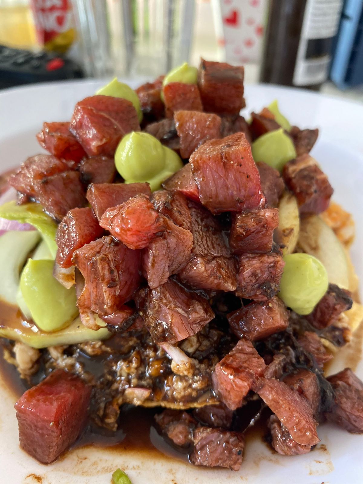 Bañado con salsa chiltepin pepino y cebolla
