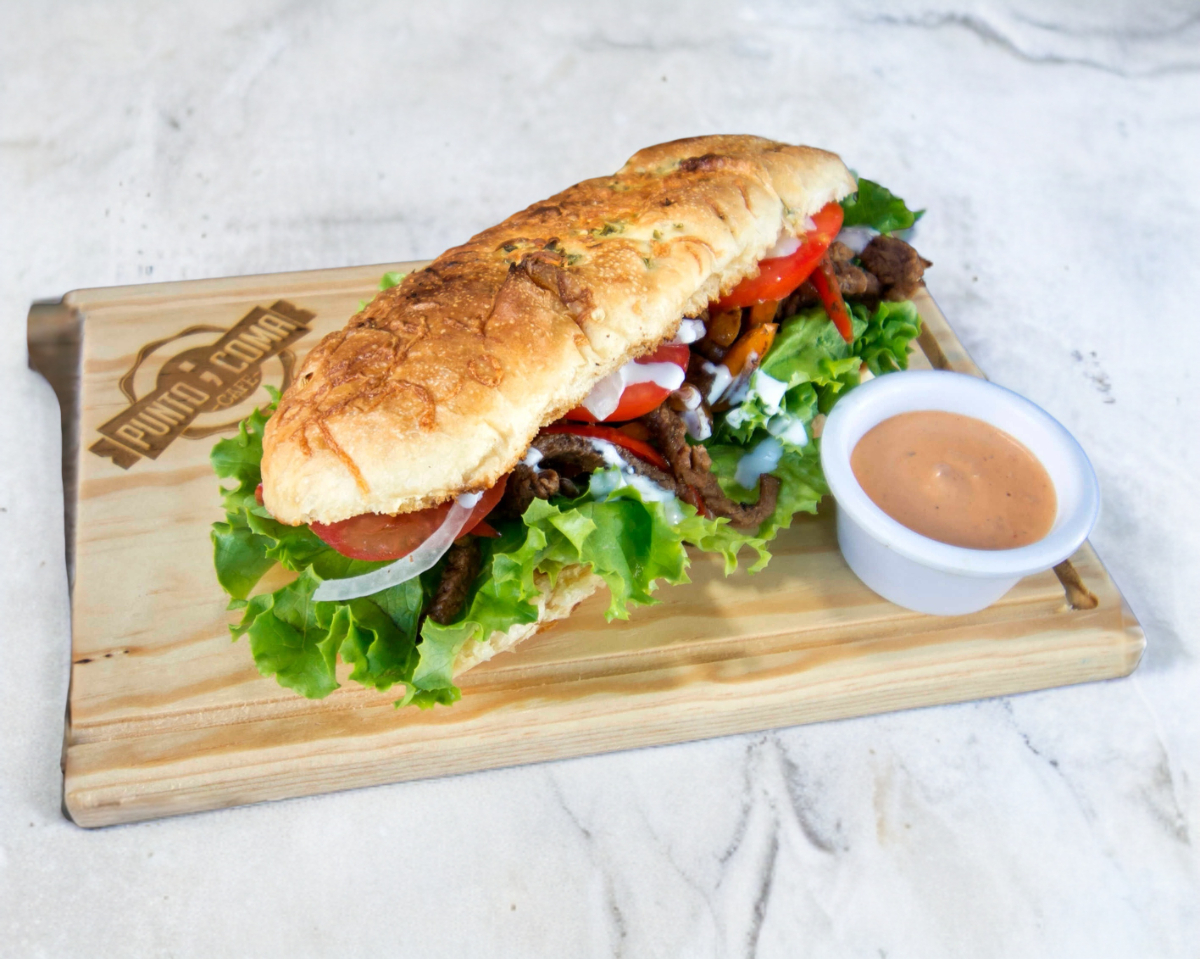 Deliciosa carne de arrachera con salsa BBQ, queso manchego, lechuga, jitomate, pepinillos y cebolla.