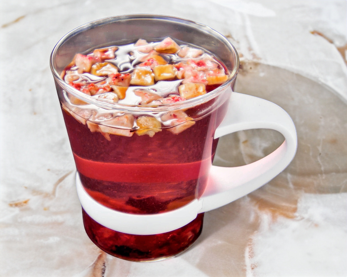 Mixto de lechugas, manzana verde, fresas, almendras fileteadas, pasas y aderezo miel mostaza.