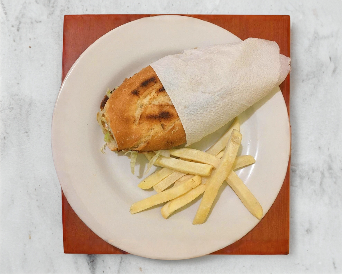 Incluye papas fritas.