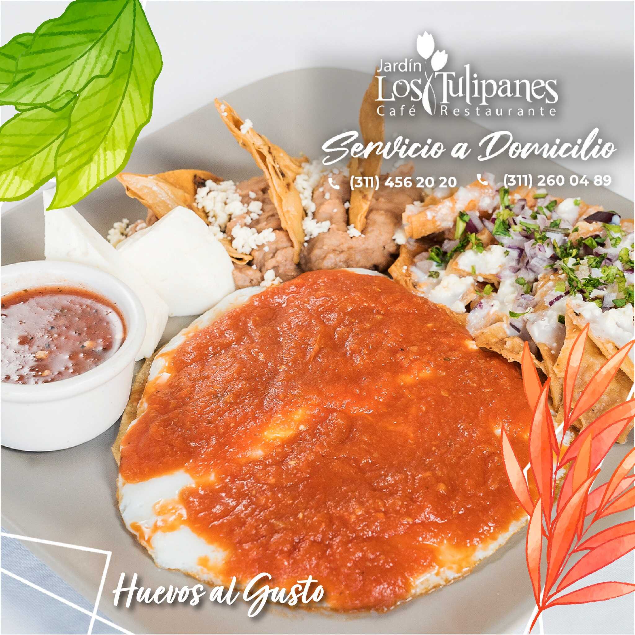 2 huevos estrellados sobre tortilla, bañados en salsa ranchera.