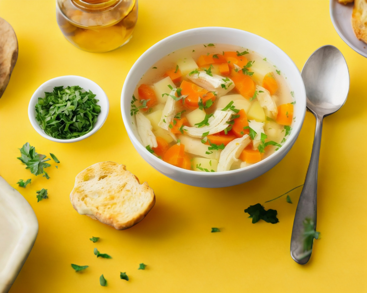 sopa aguada con trocitos de jamón