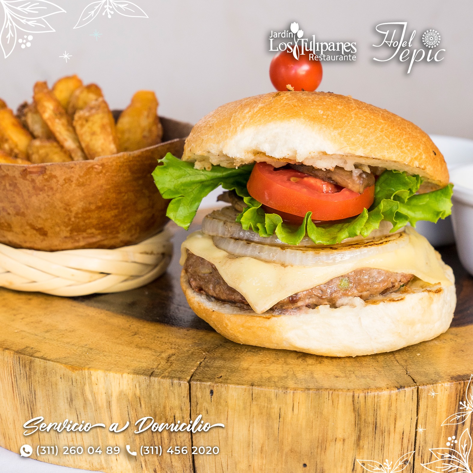 carne de res 150g jamon, gratinada, champiñones, cebolla, morron verde incluye lechuga, cebolla morada, tomate, papas gajo y aderezo