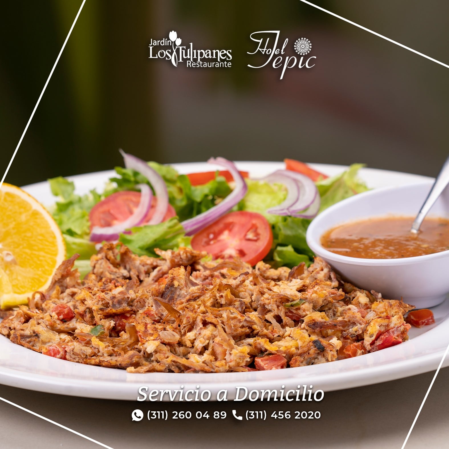 las papas son gratinadas con un toque de crema y granitos de elote, incluyen cebolla asada, chile, toreado y salsa picosa