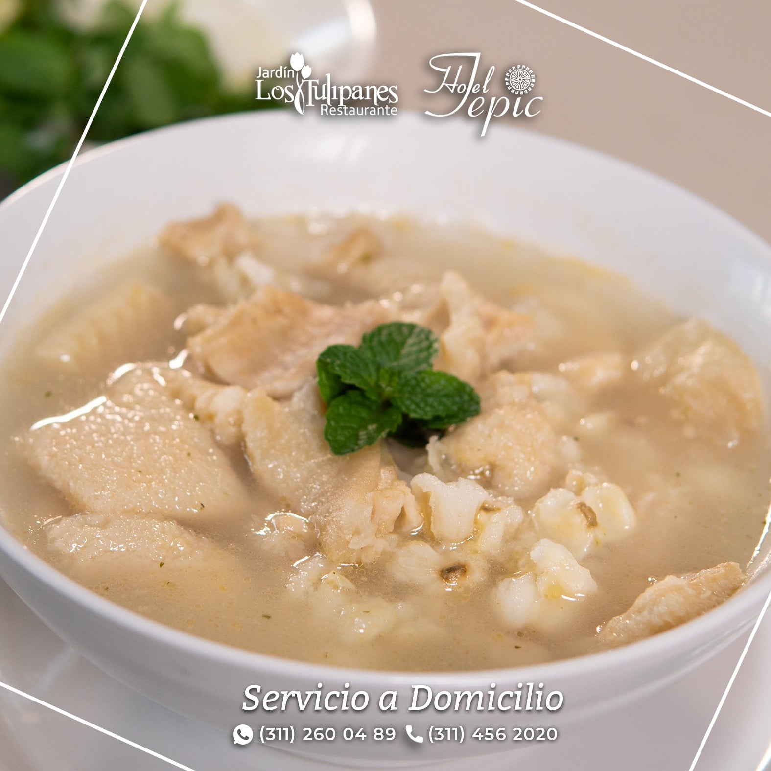 sopa de tortilla, aguacate,queso y crema