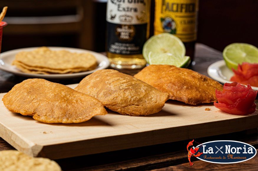 🍤Masa dorada rellena de camarones guisados en su jugo, cocinados con un toque casero que resalta todo su sabor. Una empanada jugosa, con el sazón del mar y una textura reconfortante en cada bocado.