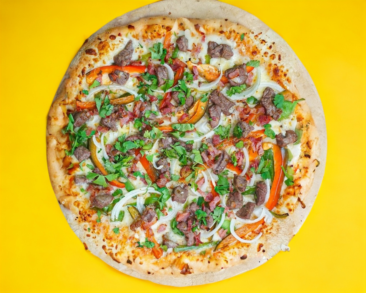 Sabor realmente mexicano, trocitos de carne de sirloin, pimiento rojo y verde, cebolla blanca y tocino