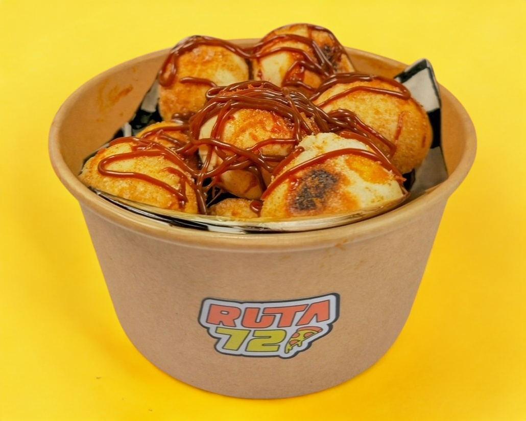 Ocho bolitas esponjadas con azúcar canela y cajeta, el postre ideal.