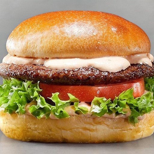 Hamburguesa de 150g de carne de res, aderezada con nuestro dip de la casa, cebolla caramelizada, jitomate, cebolla cruda y lechuga fresca en pan Brioche.