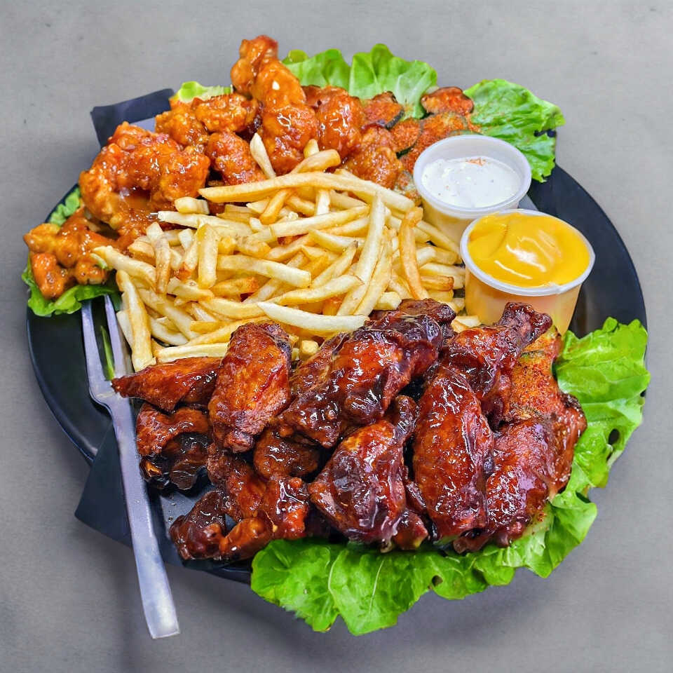 250g de crujientes papas a la francesa acompañadas de 1 orden de alitas bañadas en tu salsa favorita.