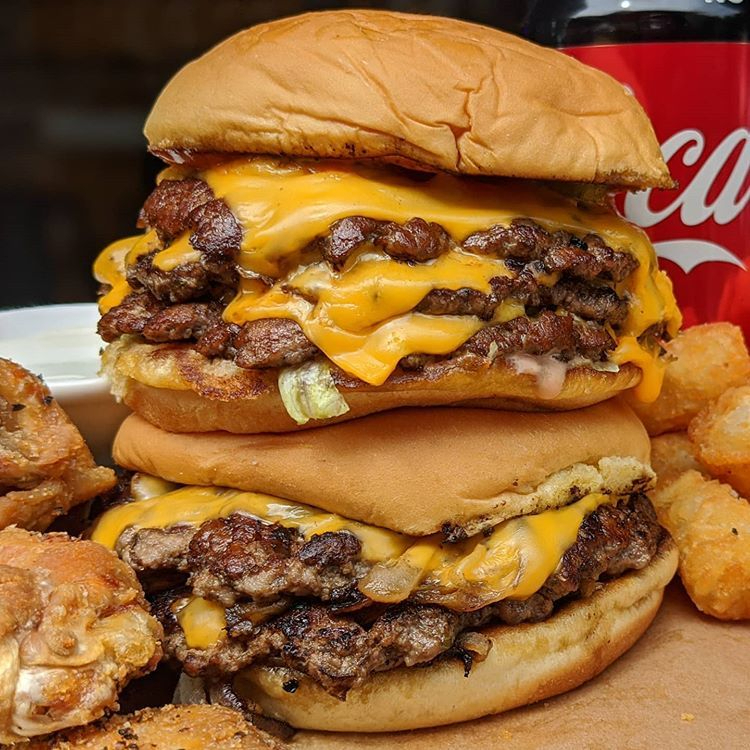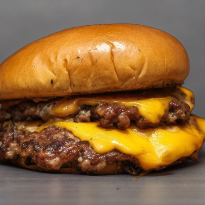 Hamburguesa con DOBLE carne de res de 150g con triple queso amarillo, aderezada con nuestro dip de la casa, cebolla caramelizada en pan Brioche.