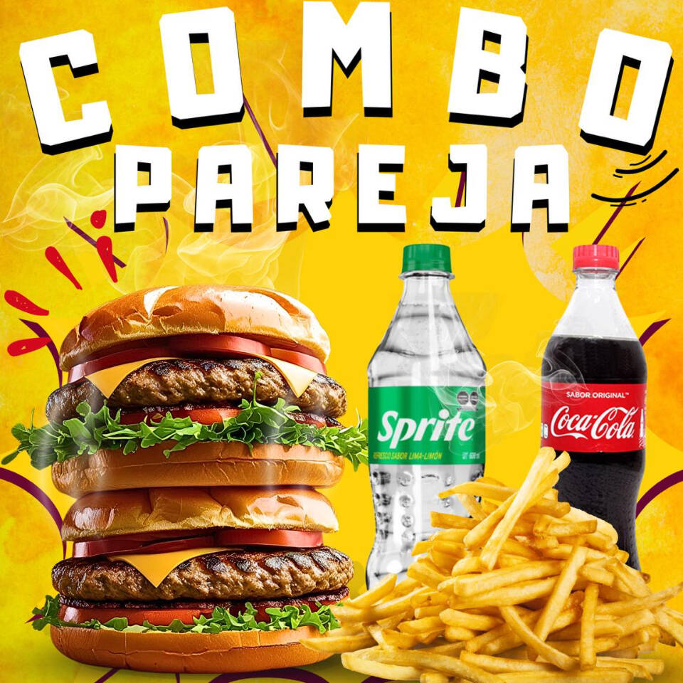 1 HAMBURGUESA TRADICIONAL + 1 HAMBURGUESA DOBLE CHEESE + 1 PAPAS BONELESS