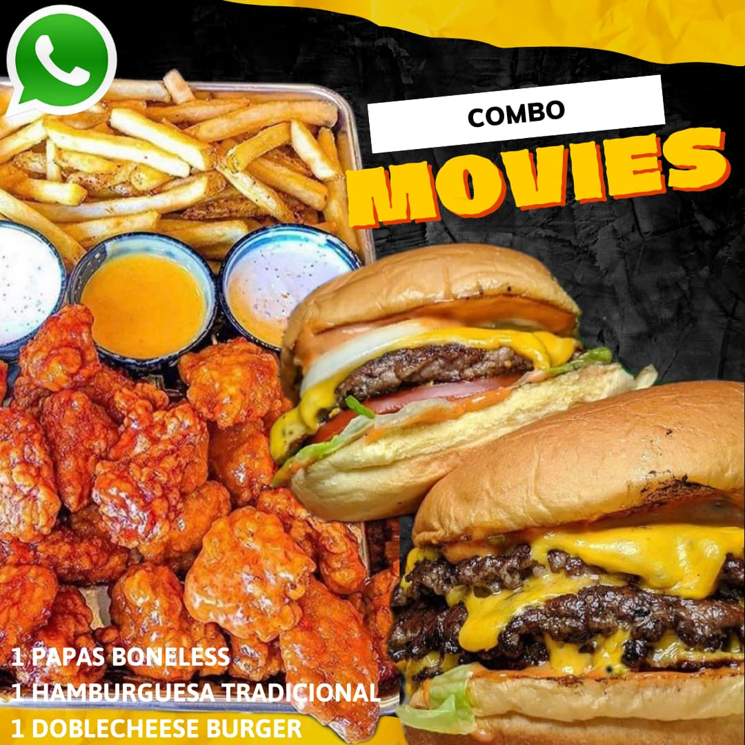 2 HAMBURGUESAS TRADICIONALES + 1 PAPAS GAJO + 1 AROS DE CEBOLLA + 1 BONELESS + 1 ALITAS
