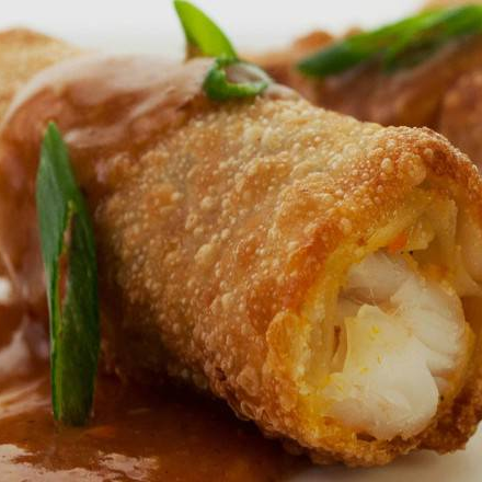 Rollo Primavera, relleno de Vegetales, y Pollo, acompañado de Salsa Teriyaki