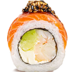 Sushi Natural forrado de Salmón y bañado con Salsa de Anguila, por dentro, Salmón, Queso, Pepino y Aguacate