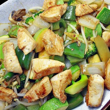 Base de Arroz Yakimeshi, con Pollo y Vegetales a la PLancha