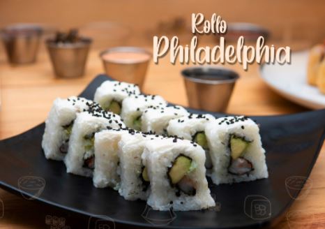 Pd:Camarón, Res y aguacate Pf:Empanizado, philadelphia, tocino, cebollin y ajonjolí. El precio establecido es de una porción de 230 grm.