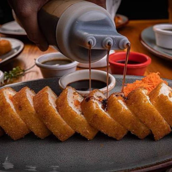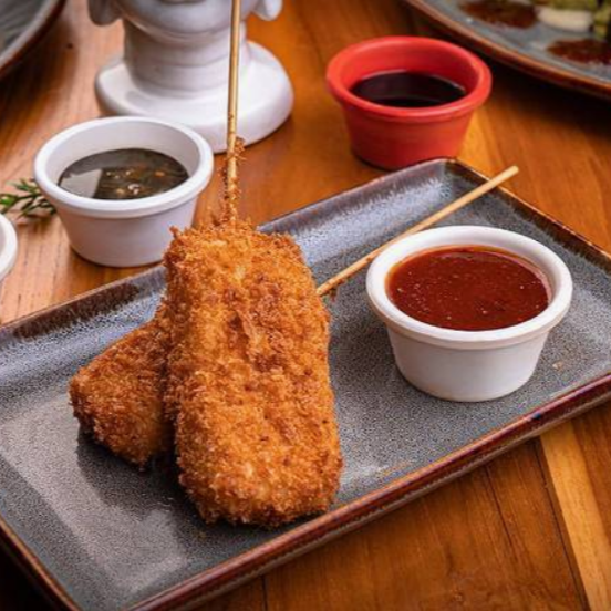 Bola de arroz natural empanizada rellena con 1 ingrediente a elegir: philadelphia, camarón, res, surimi o mar y tierra.