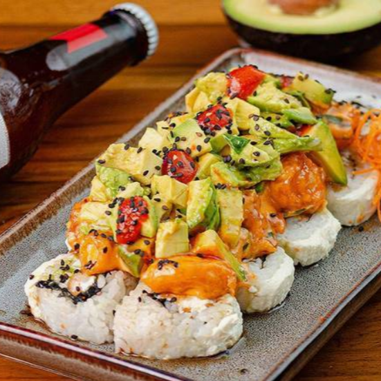 Xf: cubierto de philadelphia y greñudo de kanikama, coronado con topping de cangrejo, aderezo y salsa de anguila. Xd: pepino, camarón, philadelphia, aguacate y surimi.