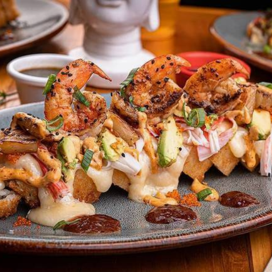Xf: guacamole y arrachera con un toque de queso parmesano y sriracha. Xd: pepino, camarón, philadelphia, aguacate y surimi.