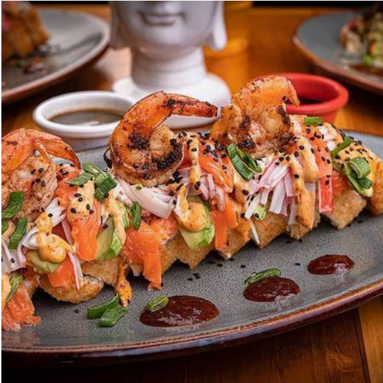 Xf: camarón, plátano dorado y un toque de siracha. Xd: pepino, camarón, philadelphia, aguacate.