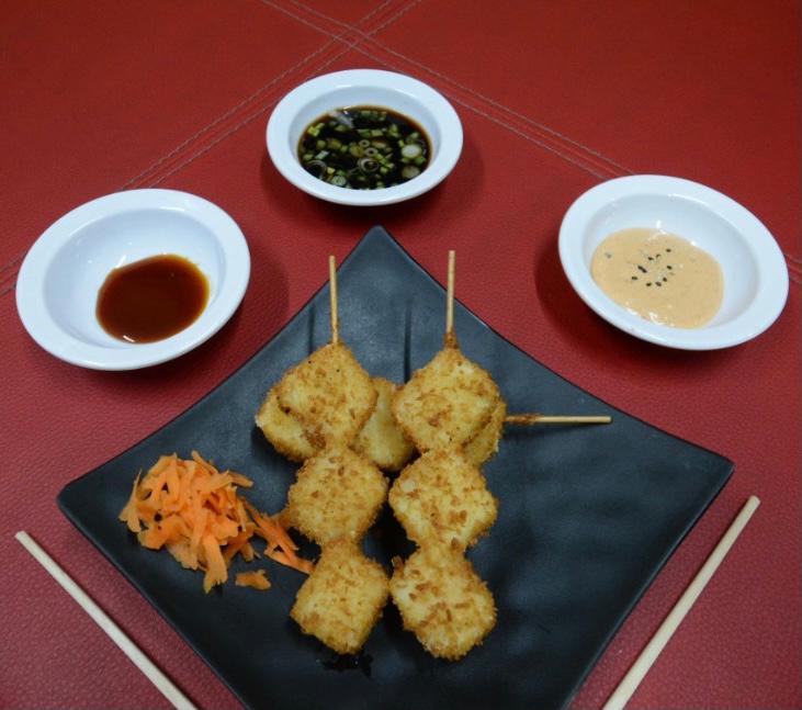 Bolas de fuego empanizada de res, Verdura y queso crema