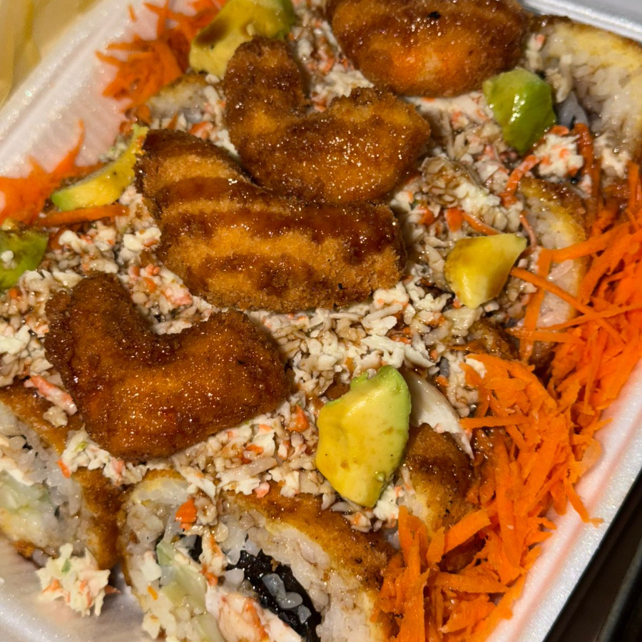 PD: pepino, aguacate, philadelphia, camaron. PF: Empanizado/natural, ensalada tampico spicy coronado con camarones empanizados grandes bañado en salsa anguila.