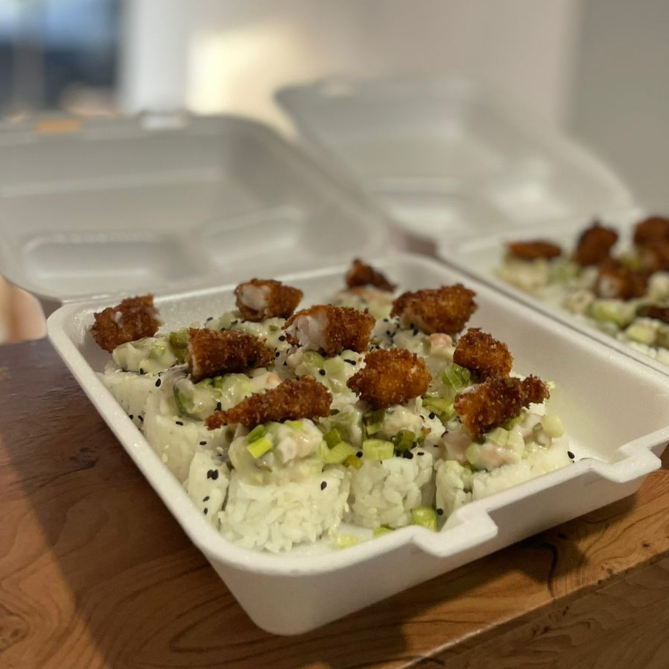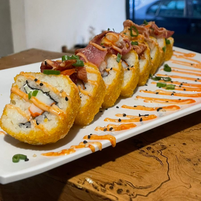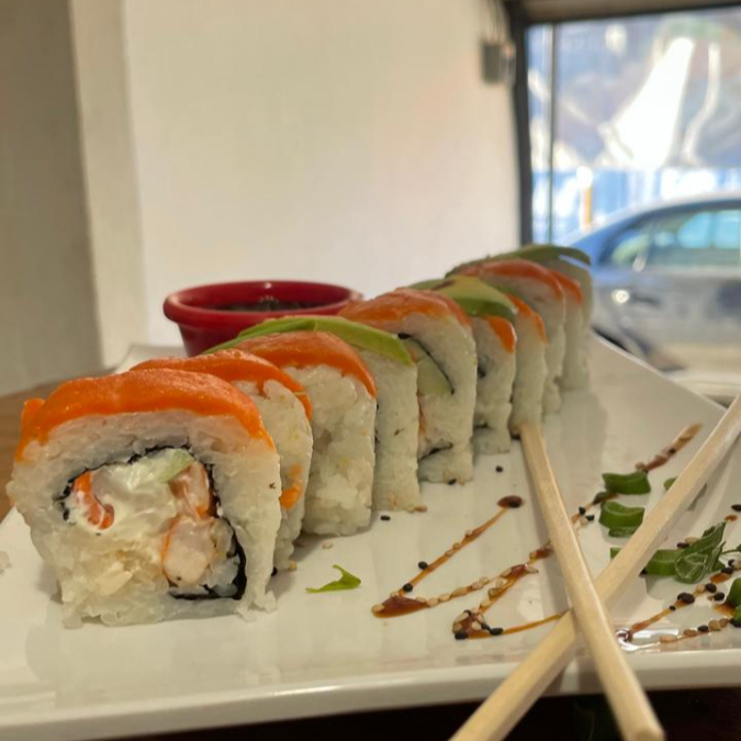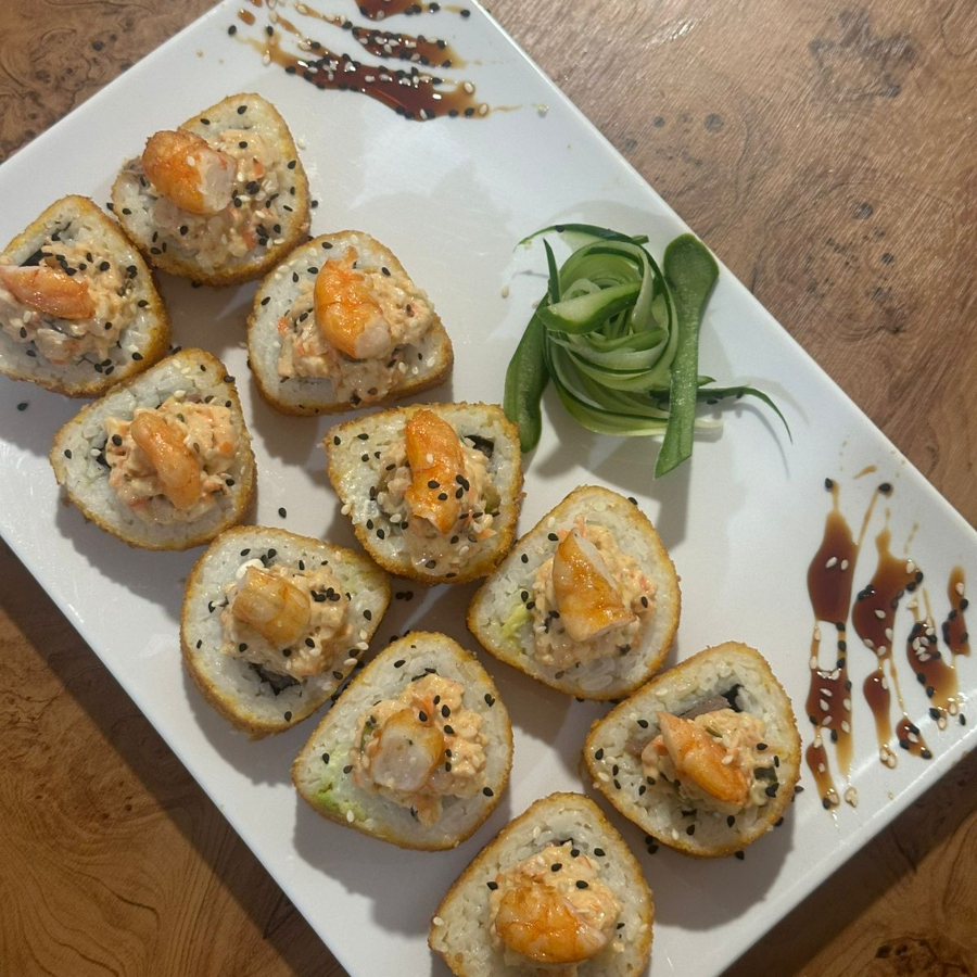 PD: Surimi, fila, pepino y aguacate. PF: Camarones momia y aderezo spacy.